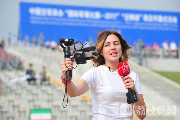 记者高温下拍摄“空降排”不仅吸引了国内的媒体,还有一位俄罗斯美女记者,大家都叫她“莎莎”,你们先感受一下赛场网红的颜值。