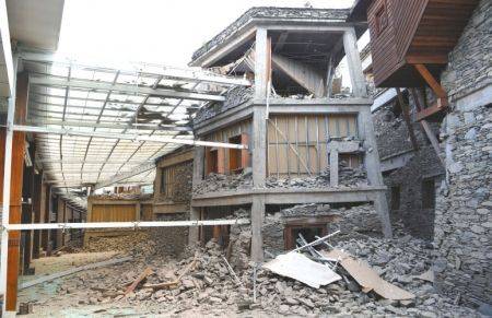 地震中受损的九寨天堂洲际大饭店餐厅。