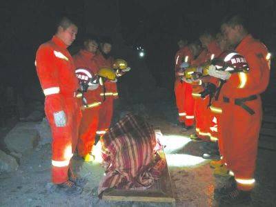 根据现场情况,刚刚徒步赶到的消防队员分为4个救援小组,再次深入酒店,对垮塌部位进行排查搜索。不久,在坍塌碎石中,消防员找到了一名被困者,遗憾的是这名被困者已经遇难。在场的消防员立即停下救援工作,站成两排面向遗体,脱帽默哀,为这位遇难者送行。简单的默哀仪式后,遇难者遗体被抬离现场,紧张的搜救继续展开。随后,四川消防总队又有多支搜救队伍赶到现场。