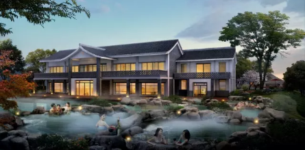 民宿建筑以中式庭院为主,白墙青瓦的楼房周围以松树和红枫等植物作装扮,使其保有现代化风格的同时,又不失旧时园林山水为趣的氛围。