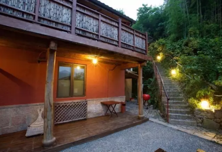 香巴拉则是一栋由老民居改建而成的民宿。红墙灰瓦,竹木为家,竹影晃动的莫干山上,连每天吹进窗子里的风都带着绿树和翠竹的味道。