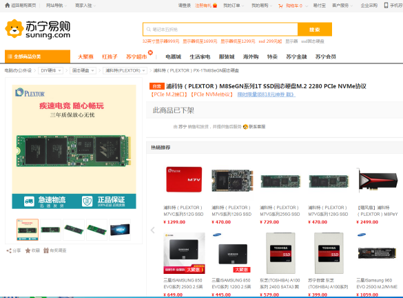 根据众多投诉人提供的信息,荔枝新闻记者在苏宁易购网站找到了他们购买的那一款硬盘,页面显示“此商品已下架”。