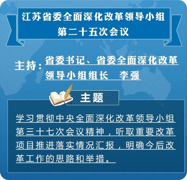 荔枝新闻讯 江苏省委书记、省委全面深化改革领导小组组长李强日前主持召开省委全面深化改革领导小组第二十五次会议。