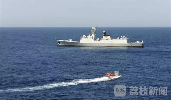 ▲和平方舟医疗分队乘坐小艇前出到扬州舰巡