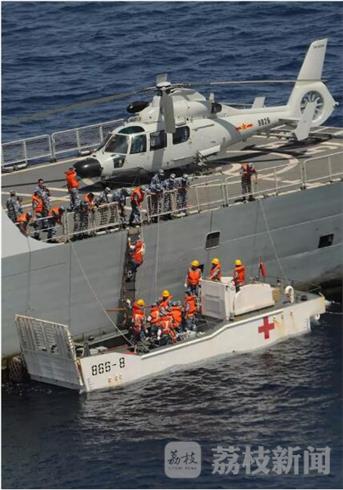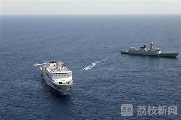 ▲和平方舟在亚丁湾为扬州舰提供医疗服务