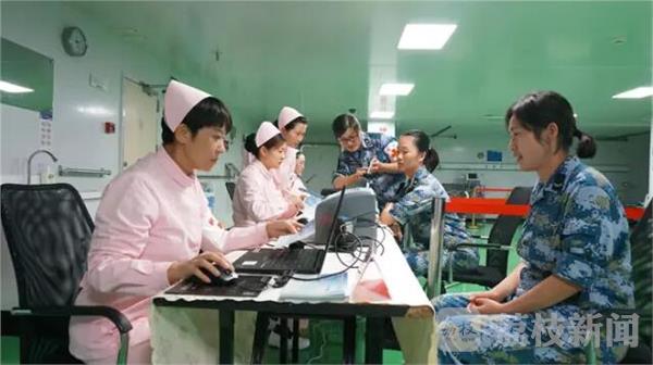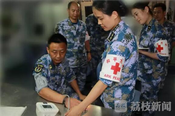 ▲和平方舟医疗分队在扬州舰的战位上为舰员巡诊