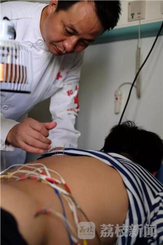 ▲和平方舟医护人员在主平台门诊为护航官兵做针灸