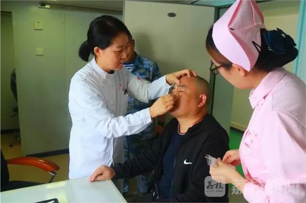 ▲ 和平方舟眼科主治医师吴晋晖为张春燕实施眼角膜清创术