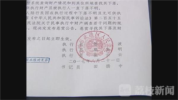 从目前来看,仅8月至今,武进法院悬赏执行的申请量就达到了以往一年的总和。 武进法院执行局执行员曹玉玉:“因为我们发动了广大群众的力量,来查找被执行人财产线索,总比法院一家和申请人单方去找的话,线索更好找一点,执行结案率会有很大的提高。”