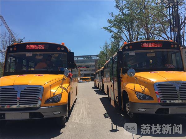 中午,十辆亮黄色的“大鼻子”校车缓缓驶进金陵中学河西分校的大门,非常惹眼。从外观上看,“大鼻子”校车像是“卡车头”和“公交车车身”结合在一起,进入车厢,所有座位全部是软包,每个座位上都配有安全带,在车的最后面还有个红色报警装置。为金中河西提供校车服务的某客运集团相关负责人袁红兵介绍,这些都是为了保护车内师生的安全 。 “考虑防撞性、安全性,车头是凸出来的,像个长鼻子,防撞的前后保险杠是加厚的,座位也是高背加厚的,包括安全保险带。考虑学生遗漏,里面有安全装置,车子停下来,驾驶员要巡查到最后,有个红色按钮按一下,才能解除,你才可以把车门关起来,不然合不起来的。”金中河西校长朱焱告诉记者,尽管学校有寄宿条件,但一些家长还是选择走读,住得远的接送就是个难题,此前学校摸过底,小学初中高中需要校车上下学的有五六百人,为了解决家长的后顾之忧,同时也从安全角度考虑,今年学校合作推出“大鼻子”专业校车,首批开辟十条线路,如果有需要以后还会增加。 “从依法依规办学的角度,提升学校的形象、品质,包括城市的一道风景,基于安全需要,我们选择了这样的合作模式,第一期开了十条线,后面根据学生具体情况可能还会增加。”金中河西的大鼻子校车是46座的,一位驾驶员、两位监管老师,其他43个座位给学生,十辆车可以解决430位学生的上学放学。客运集团相关负责人袁红兵介绍,金中河西开设的十条线路包括六合、浦口、江宁等区,每条线设置了9个站点,方便接送沿途的学生, “最远的江宁线,正常江宁最早6点一刻,到学校大概7点15分左右,小学部根据上学时间可能会推迟。有停靠点的,每条线上,根据学生要求,我们设计了9个站,在主线路上,比如公交车站,明显的位置设置。我们是第一批上线,十辆车,根据学生乘车量可能还会再增加。”