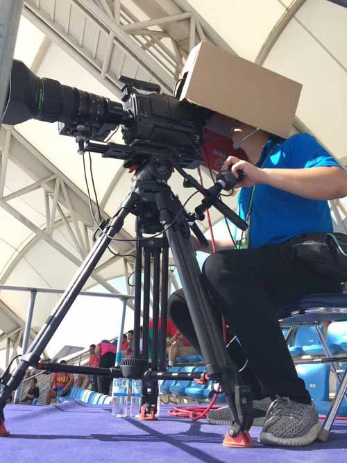 甄乐所在的摄像团队有8个摄像机机位,其中至少三位都顶着一个纸箱,他说,这都是为了把精彩的比赛画面拍摄下来,奉献给没法到现场的观众。