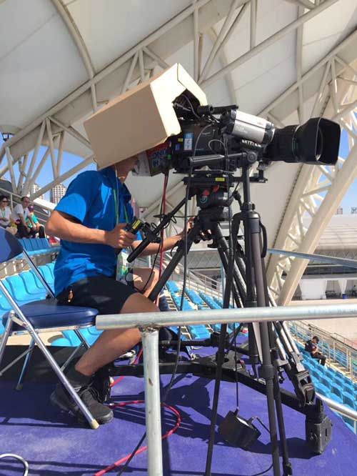 室外项目的曲棍球运动员在训练和比赛中的艰苦程度肯定名列前茅,不过需要拍摄每一场比赛的转播团队同样也辛苦。甄乐说,曲棍球是持续时间最长的项目,从8月21日开始,到9月7日才结束。