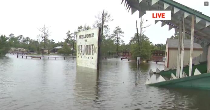 美国得州一家鳄鱼园受飓风影响水位上涨,园中短吻鳄恐逃出围栏。