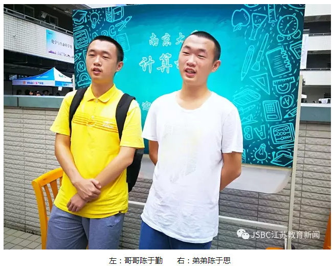 陈于勤回忆自己看见高考成绩的那一刻,心情十分激动。“当时估分估得比较低,分数出来以后,没有想到自己能考得那么好。”而陈于思则坦言自己看见分数时并不是很满意,“虽然分数没有我想象中的理想,但是看看在省内的排名还可以,还是发挥出了自己应有的水平的。”尽管兄弟俩在高考成绩出来后的反应截然不同,但是却很有缘分地进入了同一所大学。