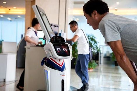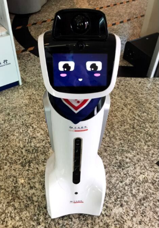 “娇娇”身怀强大的大数据处理能力,整合语音识别、人脸声纹识别、语音合成等多项人工智能技术,脚下还踩着三个驱动轮,可以在大堂中自由“走动”,领着客户去窗口办理业务。