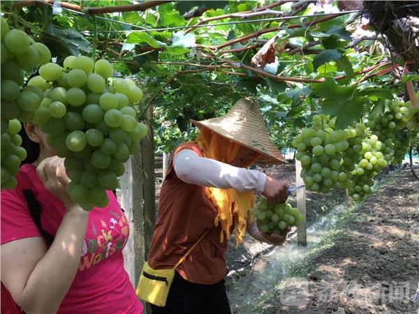 据葡萄种植主介绍,目前村里有两三千亩葡萄园,葡萄品种主要有阳光玫瑰、红巴拉多、夏黑、金手指、醉金香等。“仰徐”牌葡萄曾获得盐城市“十佳优秀旅游产品”和“十大绿色生态食品”称号。“今年春季,气候适宜,葡萄长势非常好;夏季有一段时间持续高温少雨,葡萄甘甜可口。近段时间,每天都有几十甚至数百位市民前来采摘。”在葡萄园里,一位正在采摘葡萄的市民告诉记者,他是带孩子来体验田园生活,感受农民丰收喜悦的;另外,自己亲手采摘的葡萄新鲜,吃起来更“甜”。