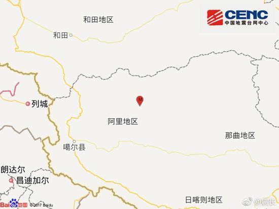 中国地震台网正式测定:09月03日05时59分在西藏阿里地区改则县(北纬34.14度,东经83.56度)发生4.1级地震,震源深度6千米。详情>>