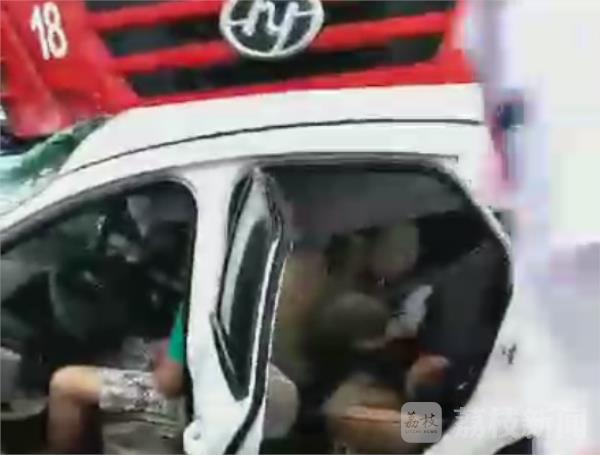 今天(9月3日)上午,南京江北沿江公路岳子河桥发生一起重大交通事故,一辆大型货车与一辆小轿车相撞,造成小轿车上三人严重受伤,生死未卜。南京交警十大队以及化工园消防方巷中队接到报警后迅速赶到现场施救。据现场市民介绍,小车被撞严重变形,车上还有一小孩,事故现场不忍直视。具体事故原因,有待警方进一步调查。