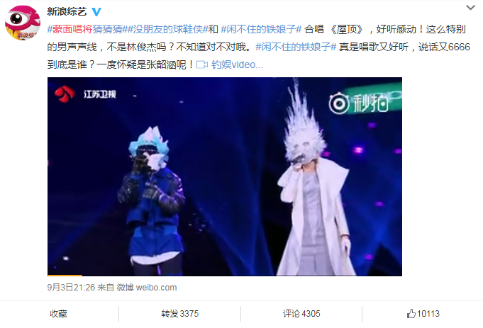 虽未揭面但已被粉丝认证为林俊杰、张韶涵的天王天后组合,声音是真的好听到炸裂~~