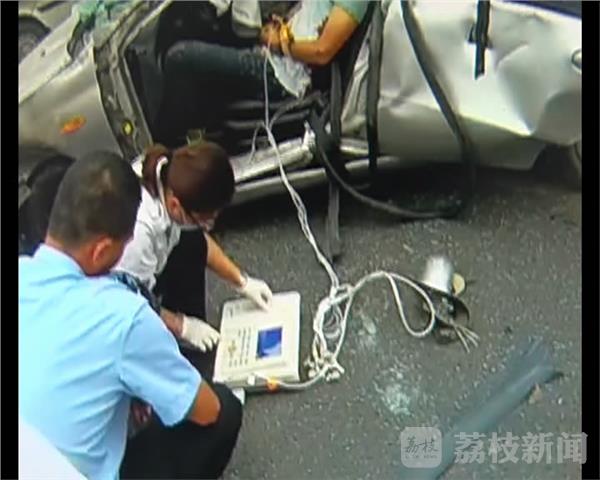 交警和消防现场研究决定,为了抢救司机生命,连人带车一起送往附近的中西医医院抢救治疗。 目前,事故原因交警部门正在调查。