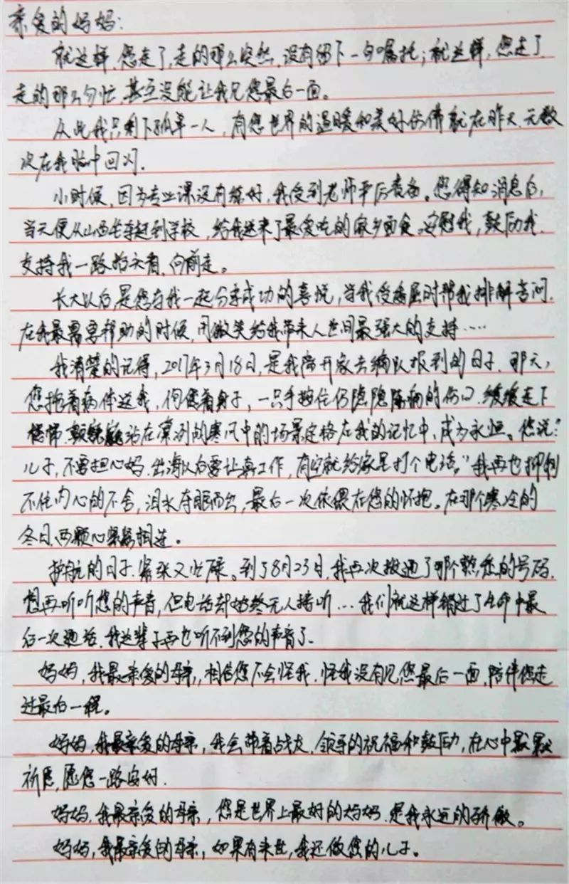 妈妈,我最亲爱的母亲,相信您不会怪我,怪我没有见您最后一面,陪伴您走过最后一程。