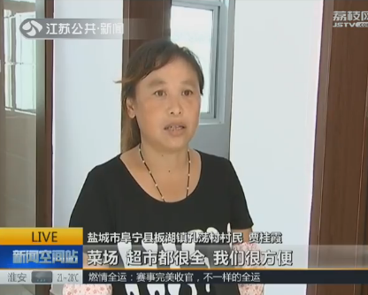 盐城市阜宁县板湖镇孔荡村村民贾桂霞:小区里面学校、幼儿园、菜场、超市都很全,我们很方便。