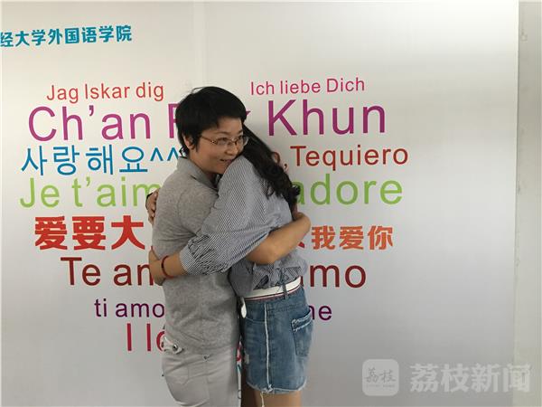 南京财经大学外国语学院党委副书记李慕原说:“目的主要是为了引导新生,在大学里面不要忘了读书,因为读书才是我们在人生当中最重要的事情。”进入大学意味着人生进入新征程,大学生要学会独自翱翔和驰骋青春旅途。为此,外国语学院让学生和家长临别前,站在用十几种语言写满我爱你的背景墙前拥抱留念,这也是大礼包第四重礼。南通女孩桑潇是个腼腆的孩子,今天,在老师启发下,对妈妈大声说出我爱你,妈妈张洁琳感动地说不出话来。 桑潇的妈妈张洁琳说:“中国的人的表达可能要含蓄一点,国外可能有爱就要说出来,所以我们要向国外人去学习,感谢南财外国语学院这么做。”南京财经大学外国语学院2017级新生桑潇说:“站在这里和父母拥抱,就相当于父母对自己的一个祝福,也相当于自己对父母的一个承诺,自己会用更好的成绩来回报父母。” 来自无锡的倪星愉也很激动,她说,自己第一次在公开场合向父母表达爱意,但也是第一次收到爸妈的大声说爱。来自丹阳的袁红同学是一家八口齐上阵,爸爸、妈妈、大姨、大姨夫和表哥表姐还有78岁的外公。当让一大家子彼此大声说爱时,场面满满都是爱。