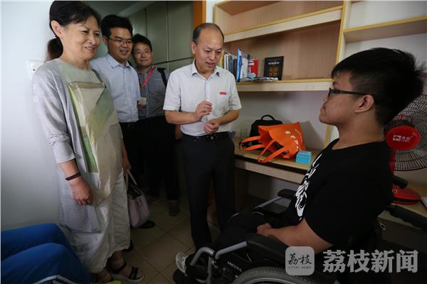 得知汤晖母子来校报到,江苏大学校长颜晓红到宿舍看望和鼓励汤晖。颜晓红对汤晖说道,“对于你,我们以你的成长成才,以及你将来的职业发展为导向,在各个学习体系当中,学院可以为你量身定制。”