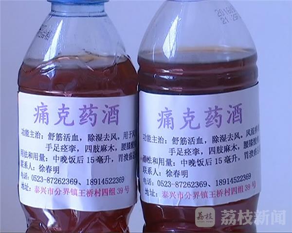 9月13日,记者从海安县公安局预审部门荻悉,泰兴人徐某父子及安徽人李某被逮捕。今年6月初,海安县公安局接到群众秦某和李某的报警,称有人生产销售假药。在犯罪嫌疑人徐某泰兴的家中,侦查人员现场查获一批白色罐装的胶囊、制作打印好的标签,以及一大罐泡好的药酒,和一袋用于罐装药酒的废矿泉水瓶。