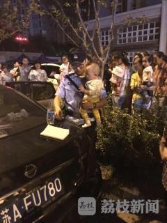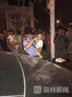 2017年9月14日20时许,公安栖霞分局仙林警务站接到报警称,在花港幸福城芙蓉园小区门口的一黑色轿车内看到一小孩被锁在车中哭喊,小孩旁边有一名没有意识的疑似醉酒男子。接警后民警迅速到达现场。