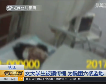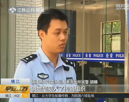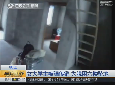镇江新区公安分局大港派出所民警胡楠:去医院的路上,应该是跟救护车上的医生讲的,说她是陷入了传销组织,被人控制,然后逃跑的时候从楼上掉下来的。