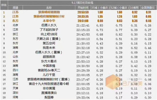不骄不躁的好综艺江苏卫视《蒙面唱将猜猜猜》第二季第三期又毫无悬念的各种登顶周日同时段各大收视排行榜~