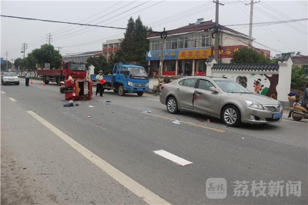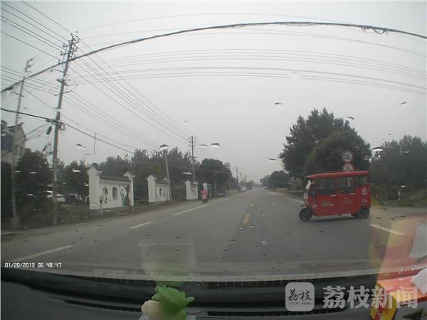 经调查,电三轮为红色“苏鼎”牌封闭式电动三轮车,驾驶人刘某,男,55岁。涉事小车为南京牌照小型轿车,驾驶人陈某,男,49岁,两人都是句容天王本地人。事后,民警从路口监控和小轿车上的行车记录仪,还原了事发经过。事发时,电三轮沿乡村小路(天金路)由南向北行驶,至340省道路口时,驾驶人刘某未停车观察,直接冲上340省道横穿马路时,被沿340省道由西向东行驶、陈某驾驶的苏A号牌小型轿车撞翻,致两车受损,电三轮驾驶员刘某头部等多处受伤。目前,事故正在进一步调查处理中。在此,交警提醒广大驾驶人,在农村道路驾驶车辆一定要谨慎驾驶,减速慢行,注意观察,车辆行径主干道时,一定要主动避让干线上行驶的车辆,切不可争道抢行,否则极易引发各类交通事故。