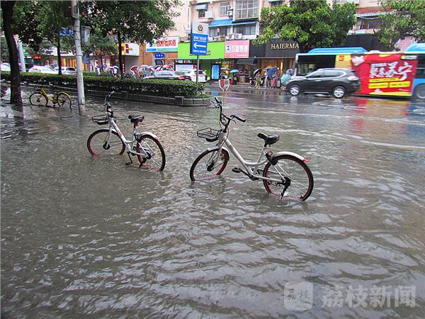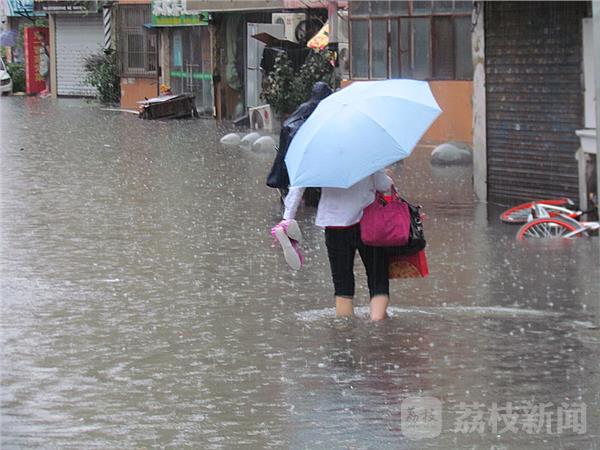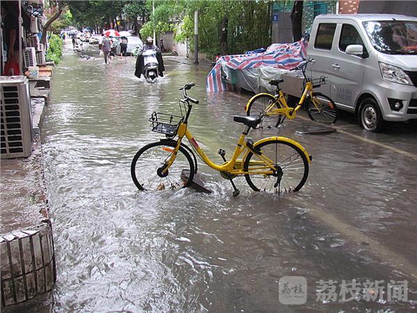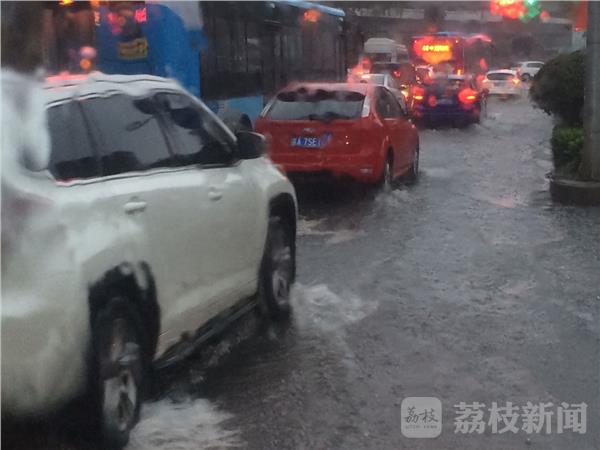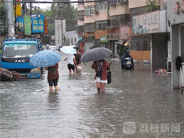 笔者驾车前往南京长江四桥,玄武大道大堵车,多处路段被淹。甚至连后宰门一所大学门前小路也被淹,积水40至50厘米,路人涉水前行。