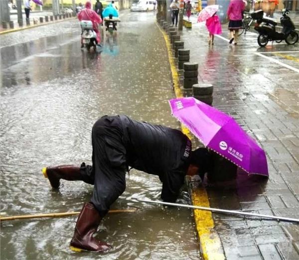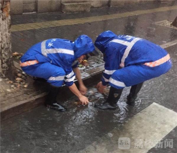 南京市城管局环卫所随即启动应急预案,环卫工人迅速由道路保洁转为防涝排涝。为了及时清理路面积水,保持道路畅通,环卫工人的身影早早地就出现在各大街头。他们对各淹水路段进行及时清扫泥沙、垃圾和杂物,架泵排涝、确保排水通畅;对已积水路段采取扫帚推水的方式促进排涝。环卫工人甚至把手伸进浑浊的地下水中疏通堵住的水道。