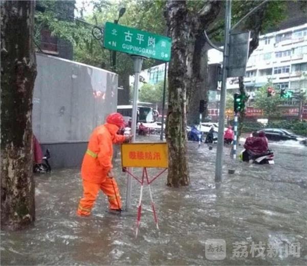 鼓楼区市政、城管、环卫全面响应,共出动约400人次、工程车8台、泵车及动力泵12台对全区各市政道路进行巡查,架设泵车、设立安全警示标志,实施人工助排。截止目前,广州路、行建路三牌楼、福建路、水佐岗、山西路等已无积水。