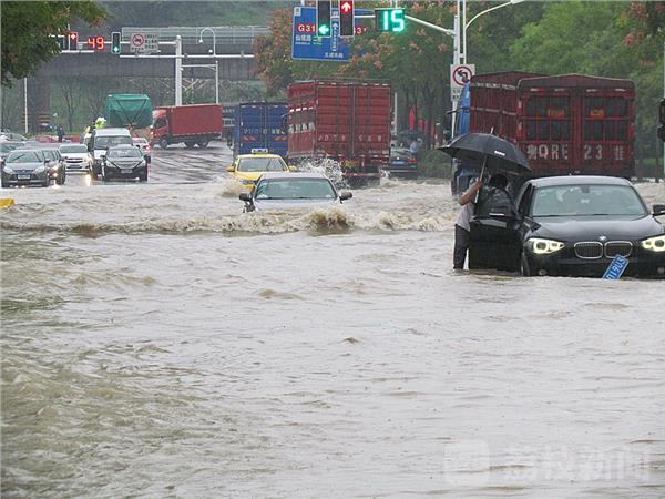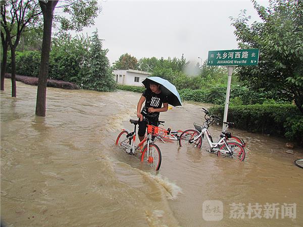 25日上午,暴雨袭击南京城,仙林地区交通出现严重堵塞。当天下午13:30时许,经过南京九乡河西路,发现九乡河河水倒灌,导致九乡河西路被淹,百米长的马路变汪洋,一些车辆都抛锚了。