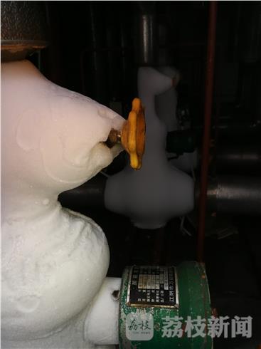 检查组一行首先来到了位于通州湾经济示范区内的南通农和冷藏科技有限公司。这是一家使用液氨制冷冷冻海鲜的企业,有冷库、制冰车间等设施,在使用液氨12吨。在液氨制冷车间,部分管道外壁上已经结了厚厚的冰,把管道包裹的严严实实,这说明阀门已有少量氨气泄漏。在冷却器上方,有个安全阀门,上面蒙了一层厚厚的灰尘。检查人员拂拭表面,发现上面铭牌上的检测日期竟然2016年12月就到期了。