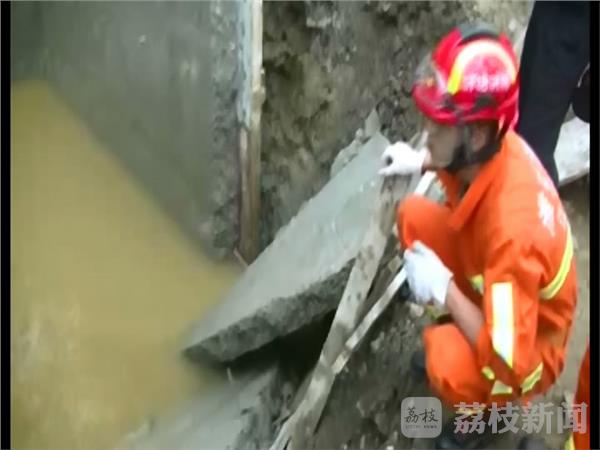 消防官兵到现场发现,该地基是一个深坑,因连日暴雨导致坑里面有齐臀深的积水。四面搭建着水泥地基,其中一面已经坍塌,人被埋在水泥墙下,有不断下沉的趋势。