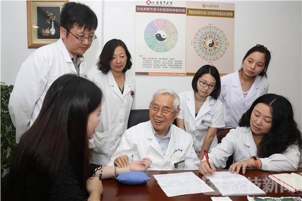 一头银发,江南口音,讲起话来依旧中气十足,这就是87岁的国医大师、江苏省中医院有名的老中医夏桂成教授。如今他仍然每周出4次门诊,看100多个病人,预约看病的人已经排到了两年半后。