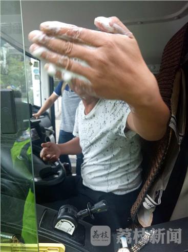 7点13分左右,在香格里拉酒店门口,民警打算对一辆苏A牌咖色大客车进行违停处罚,要求司机出示驾驶证和行驶证时,司机却说能不能等他洗完头再拿。原来该大巴车司机竟利用乘客上车的时间间隙,“抽空”在驾驶室洗个头。司机大哥头顶泡沫,面露尴尬笑容,还试图解释,称自己没有长时间违停。