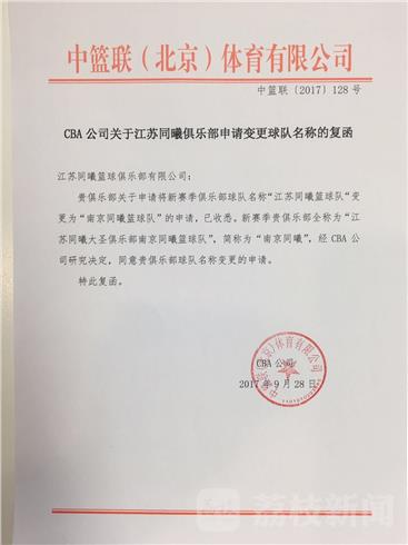 北京时间今天,9月29日江苏同曦篮球俱乐部官方宣布,球队新赛季将正式更名,名称由原本的“江苏同曦队”改为“南京同曦队”。