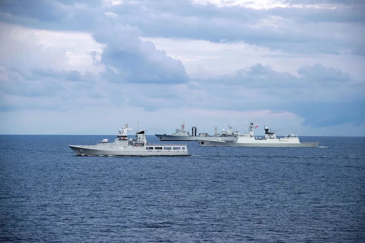编队驶离穆阿拉港后,与文莱海军举行了海上联合演练。演练主要包括编队通信、编队运动和分航仪式等内容。中方参演兵力为导弹驱逐舰长春舰、导弹护卫舰荆州舰和综合补给舰巢湖舰,文方参演兵力为轻型护卫舰06舰。中方长春舰和文方06舰轮流担任指挥舰,交替指挥联合演练。