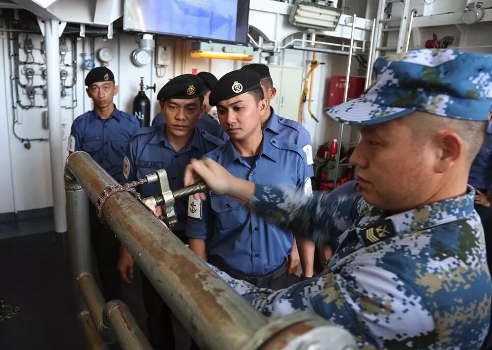 同时,编队官兵参观了文海军舰艇,观摩登临演练,中文两国海军官兵还进行了损管专业交流,并组织了拔河、足球友谊赛。长春舰、荆州舰、巢湖舰向文莱当地民众、华人华侨和文莱官兵代表开放。