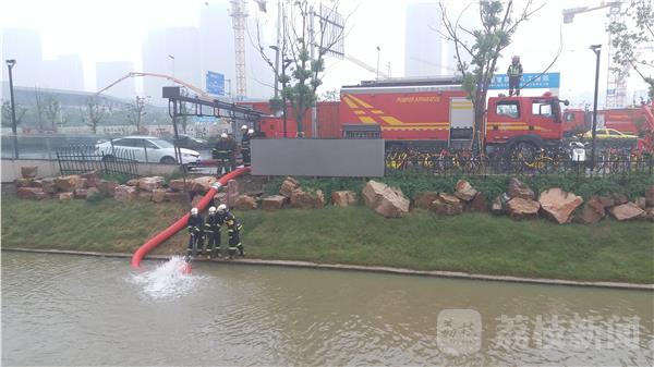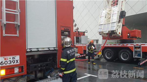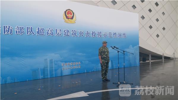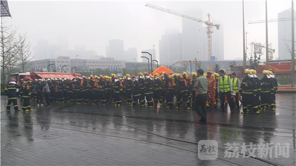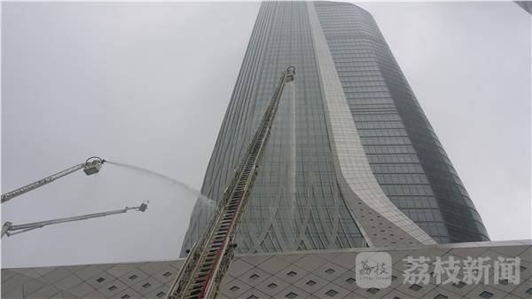 今天上午,江苏消防超高层建筑灭火救援演练在南京河西青奥公园的青奥双塔举行。