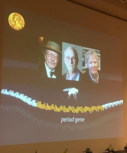 瑞典当地时间10月2日11:30,在瑞典斯德哥尔摩卡罗琳斯卡医学院,诺贝尔生理学以及医学委员会秘书托马斯·佩尔曼(Thomas Perlmann)宣布,今年该奖项的获得者是杰弗里·霍尔(Jeffrey C.Hall), 迈克尔·罗斯巴什(Michael Rosbash) 和迈克尔·杨(Michael W.Young),以表彰其在领域作出的贡献。