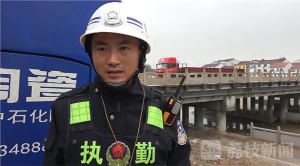 涟水县公安局交警大队辅警瞿金雄:“女孩看到我们拼命挣扎 ,如果掉下去后果不堪设想 ,我立即拦腰把她抱起来 ,和同事一起拉上岸。”