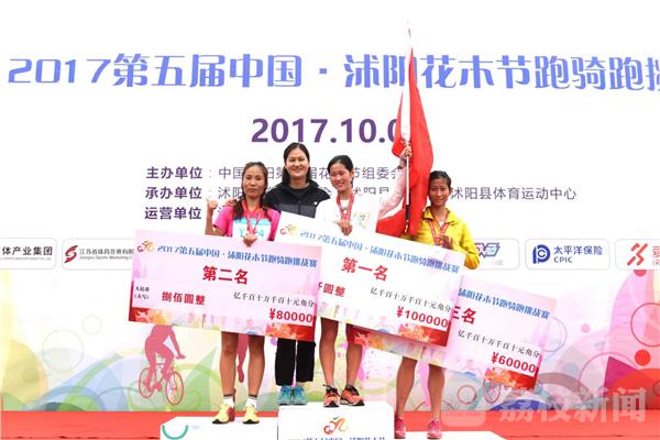 经过了激烈的17公里角逐,最终来自浙江的选手包月坤以47分43秒的成绩斩获男子组冠军,宿迁的徐振国和淮安的王柏栋分获亚军和季军;女子组方面,宿迁选手王佳莉以53分15秒的成绩获得冠军,亚军和季军分别被山东的田梅珍、宿迁的胡敏摘得。本届跑骑跑挑战赛是在铁人三项基础上创新出的比赛模式——路跑(约3公里) 骑行(约11公里) 路跑(约3公里),参赛选手需要通过换项连续完成三个赛段总长度17公里的比赛。