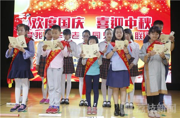 10月1日下午,由江苏广播电视总台、江苏广播电视报《创星少年》编辑部主办的 “爱我中华”老少同乐 国庆联欢会在南京正人少儿艺术学院微剧场举行。105岁老党员、老红军秦华礼四代同堂合唱《我的祖国》,献礼建国68周年。