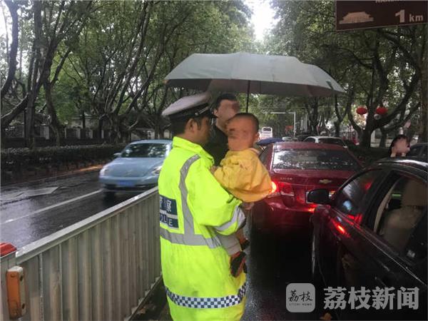 昨天(10月2日),正值国庆长假第二天,南京中山东路沿线东西向车流很大,交通拥堵。晚上17时许,交警二大队三中队民警季建欣正在路口疏导交通,突然听到一声“砰”,两辆小车追尾了。他立即走上前去查看情况,此时两名驾驶员已经走到路口,讨论两车碰擦问题。其中一名男子手上抱着一个小男孩,许是刚刚发生的事故让小孩受到了惊吓,小孩在男子的怀中哭闹不止,而该男子忙于讨论车辆情况,无暇顾及哭闹的小孩。